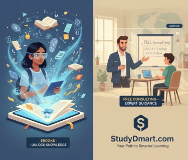 Our mission at StudyDmart.com is to empower students and professionals by providing high-quality, accessible educational resources and expert guidance. Through our curated ebooks and free personalized consultations, we strive to be the trusted partner that simplifies your academic and career journey, turning your aspirations into achievable goals.
